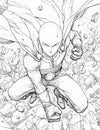 Download and color this epic Saitama coloring page as he descends into battle! Unleash your creativity with this One-Punch Man scene.