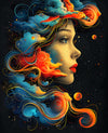 This breathtaking Celestial Woman Art is a masterpiece of imagination, designed to be a portal to the cosmos right on your wall. A true star from the Infinite Visibility collection, this artwork is more than a print; it’s a waking dream. The piece features the delicate and serene profile of a beautiful woman, her skin dotted with a constellation of freckles, her gaze fixed on some distant star. Her magnificent hair is a living nebula, a swirling, flowing galaxy of cosmic clouds, stardust, and distant planets, rendered in a glorious palette of sunset oranges and deep space blues. This artwork is a perfect, spellbinding centerpiece for a bedroom, living room, or any space where dreams are made.