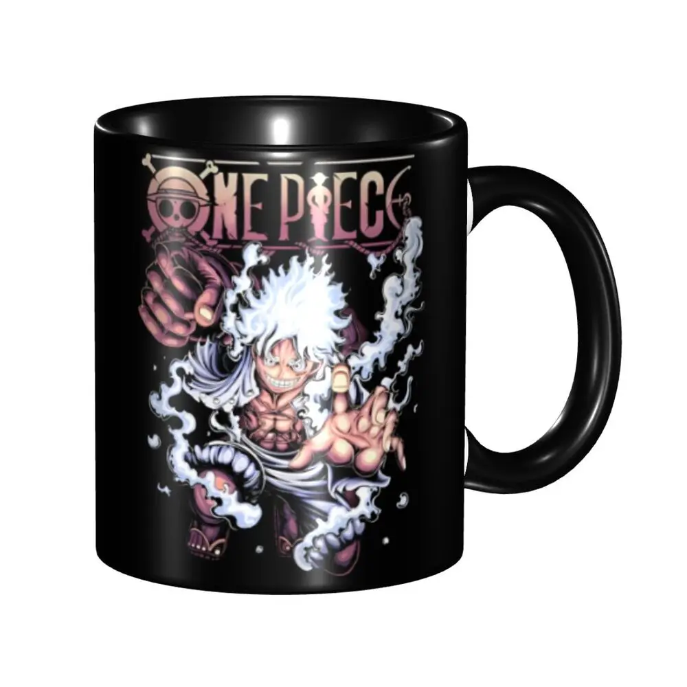 A ceramic Monkey D Luffy Quotes One Piece Mug featuring funny anime text and pirate character art, designed as a durable present for kids.