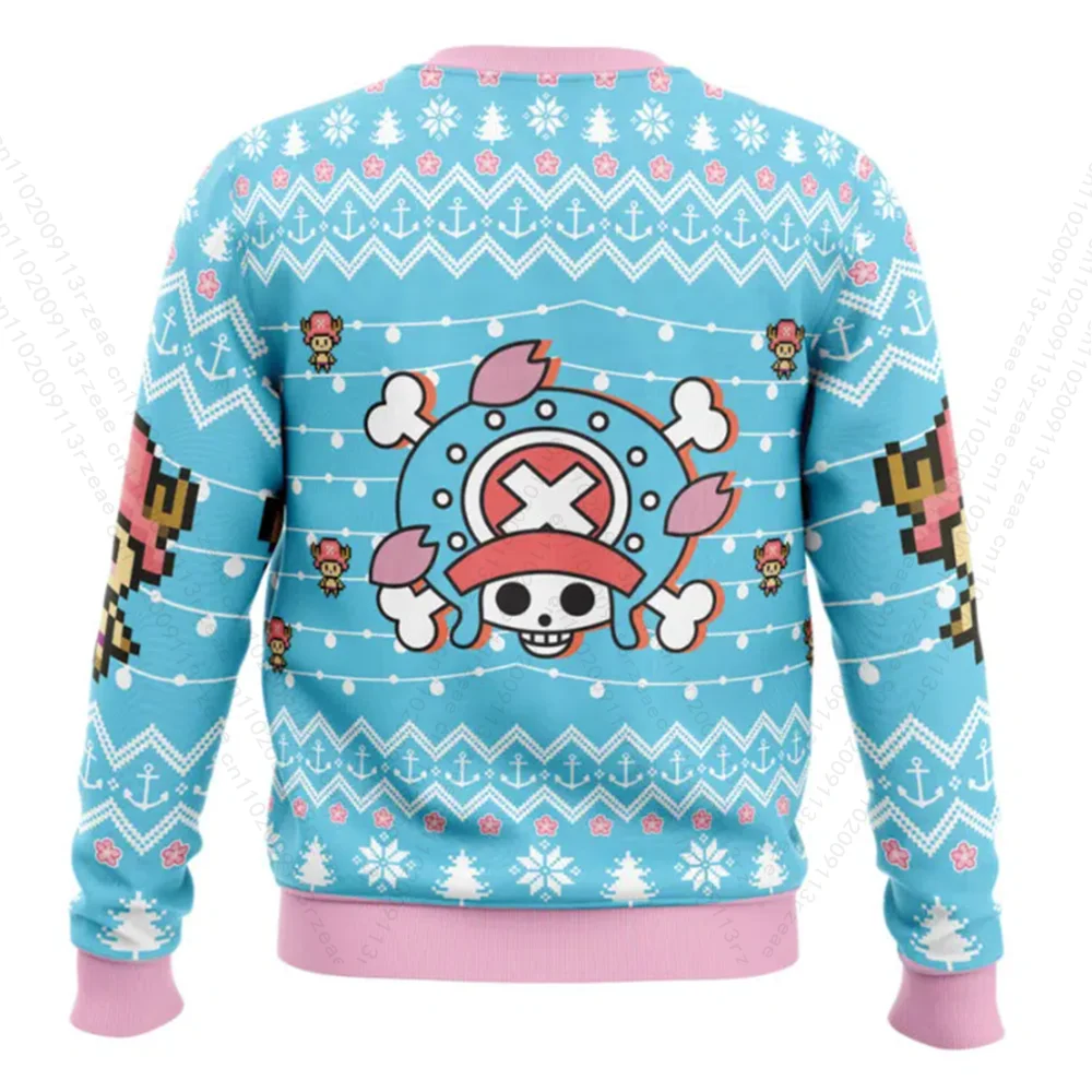 A casual cartoon Tony Tony Chopper Sweatshirt, perfect as a One Piece Christmas cosplay pullover for men and kids.
