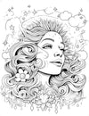 The Radiant Goddess Coloring Page invites you to a world of celestial joy and artistic serenity, making it the perfect activity for a mindful escape. This exquisite and detailed illustration features the beautiful, smiling face of a sun goddess, her expression one of pure, knowing bliss. A magnificent radiant crown, like the rays of the sun, frames her face, while her voluminous, wavy hair flows around her like cosmic clouds, intricately woven with beautiful flowers. This is far more than a simple drawing; it's a carefully composed piece of art designed to be a deeply satisfying and immersive coloring experience that melts away stress. Let the joyful energy of this Radiant Goddess Coloring Page fill your creative session with light and peace.
