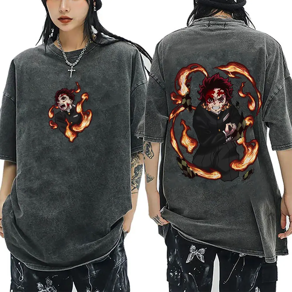 Upgrade your style with this Demon Slayer Vintage T-Shirt! 🌊 100% cotton washed oversized top featuring trending anime art. Shop the streetwear look now!