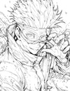 This artwork masterfully depicts the cool confidence of the "Strongest" as he lifts his blindfold, a playful smirk gracing his lips. The detailed, gritty line work and surrounding debris hint at the immense power that's about to be unleashed. It’s an intricate and highly rewarding design for any colorist. Your mission: bring those legendary, piercing blue eyes to life. Whether you use pencils, markers, or a digital tablet, this high-resolution JPG file is designed for a stunning, frame-worthy result.