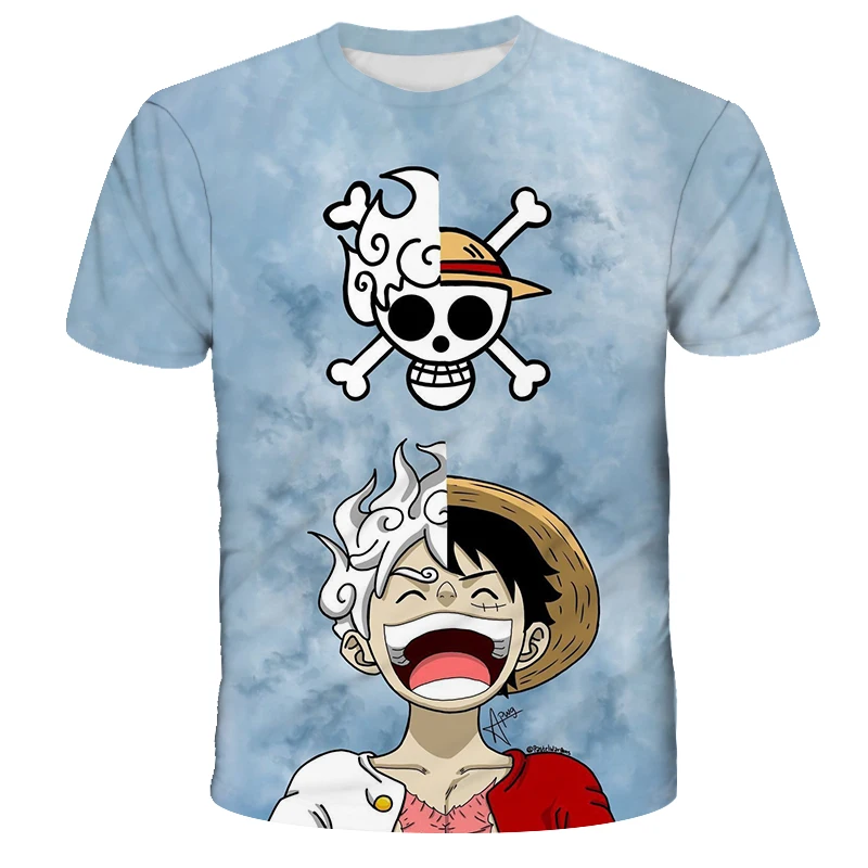 A casual One Piece Luffy T-shirt featuring a cartoon Monkey D. Luffy graphic, designed as a loose, breathable short-sleeve top for men and boys.